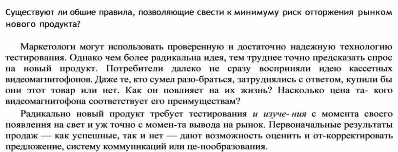 Существуют ли обшие правила, позволяющие свести к минимуму риск отторжения рынком нового продукта?