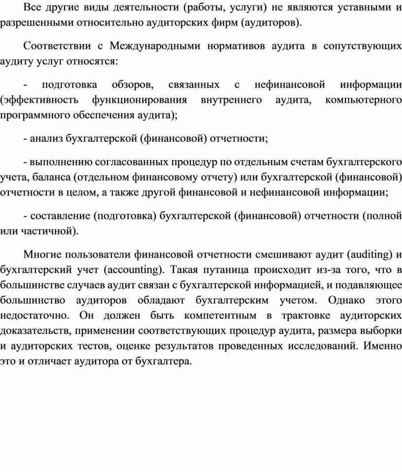 Все другие виды деятельности (работы, услуги) не являются уставными и разрешенными относительно аудиторских фирм (аудиторов).