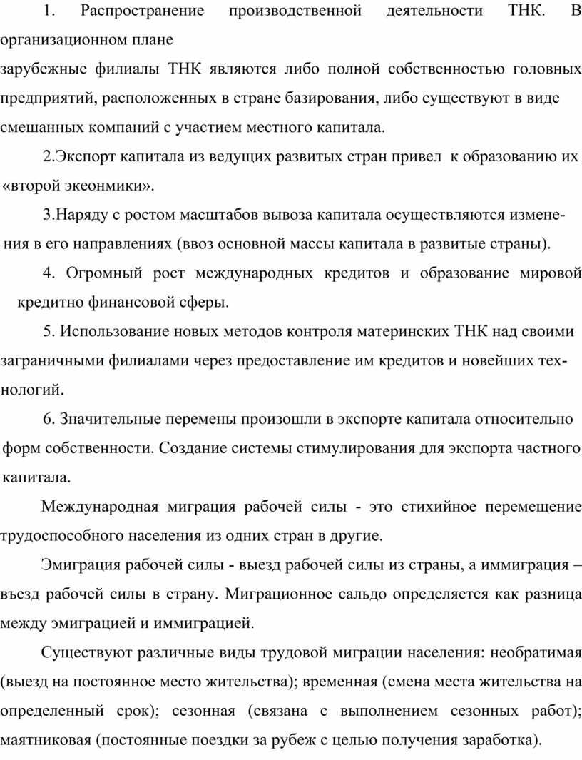 1. Распространение производственной деятельности ТНК. В организационном плане