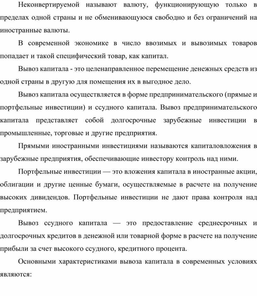 Основными характеристиками вывоза капитала в современных условиях являются: