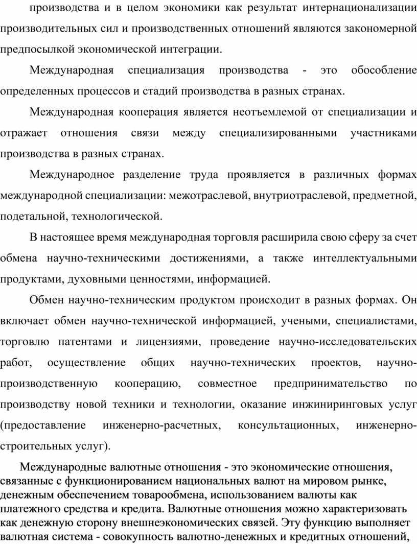 Международное разделение труда проявляется в различных формах международной специализации: межотраслевой, внутриотраслевой, предметной, подетальной, технологической.