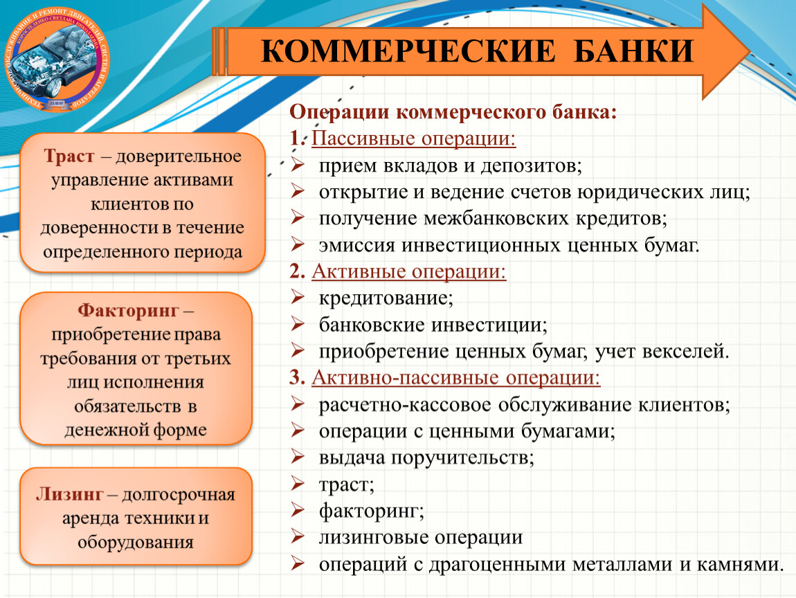 Операции коммерческого банка: