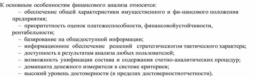 К основным особенностям финансового анализа относятся: