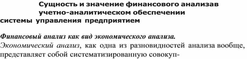 Финансовый анализ как вид экономического анализа.