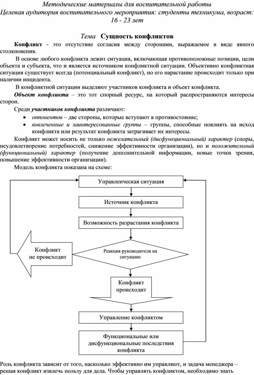 В основе любого конфликта лежит ситуация, включающая противоположные позиции, цели объекта и субъекта, что и является источником конфликтной ситуации. Объективно конфликтная ситуация существует всегда (потенциальный конфликт), но его нарастание происходит только при наличии инцидента.