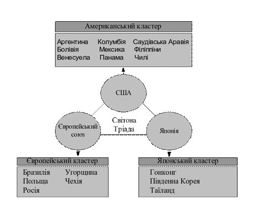 Рисунок 1.1 – Основні кластери прямих іноземних інвестицій та міжнародної