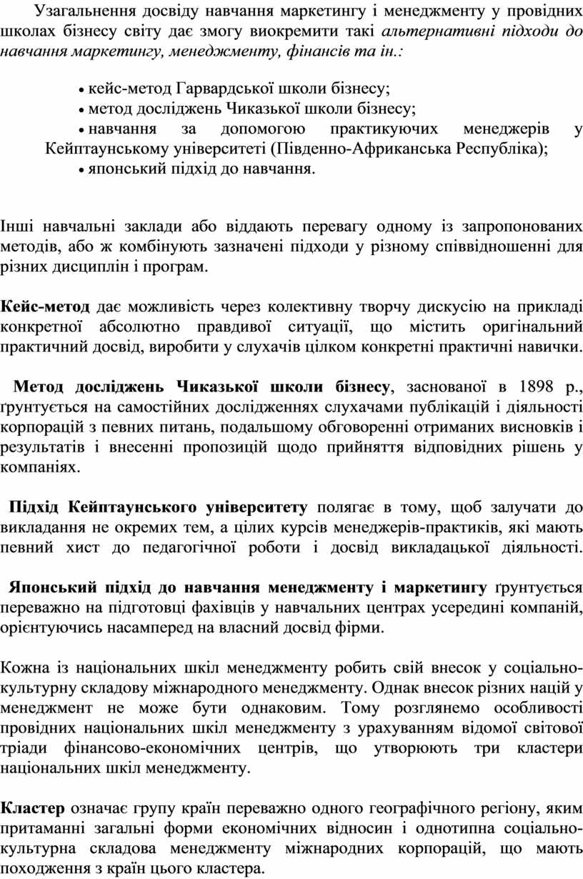 Узагальнення досвіду навчання маркетингу і менеджменту у провідних школах
