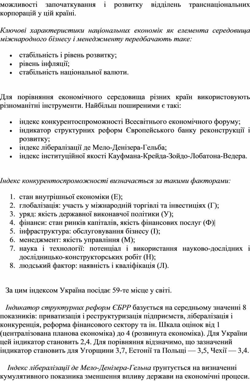 Економічне середовище міжнародного менеджменту являє собою сукупність економічних відносин і ресурсів країн-господарів, що визначають можливості започаткування і розвитку відділень транснаціональних корпорацій у цій країні.