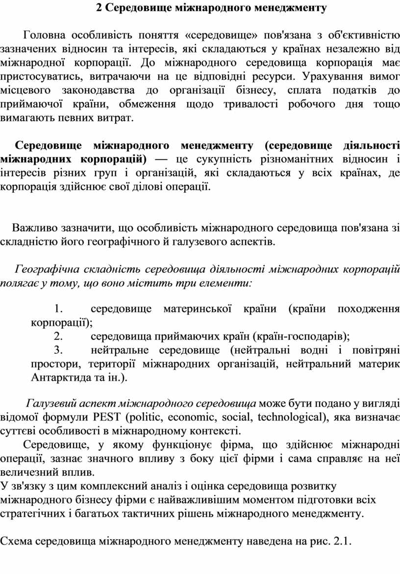 Схема середовища міжнародного менеджменту наведена на рис. 2.1.