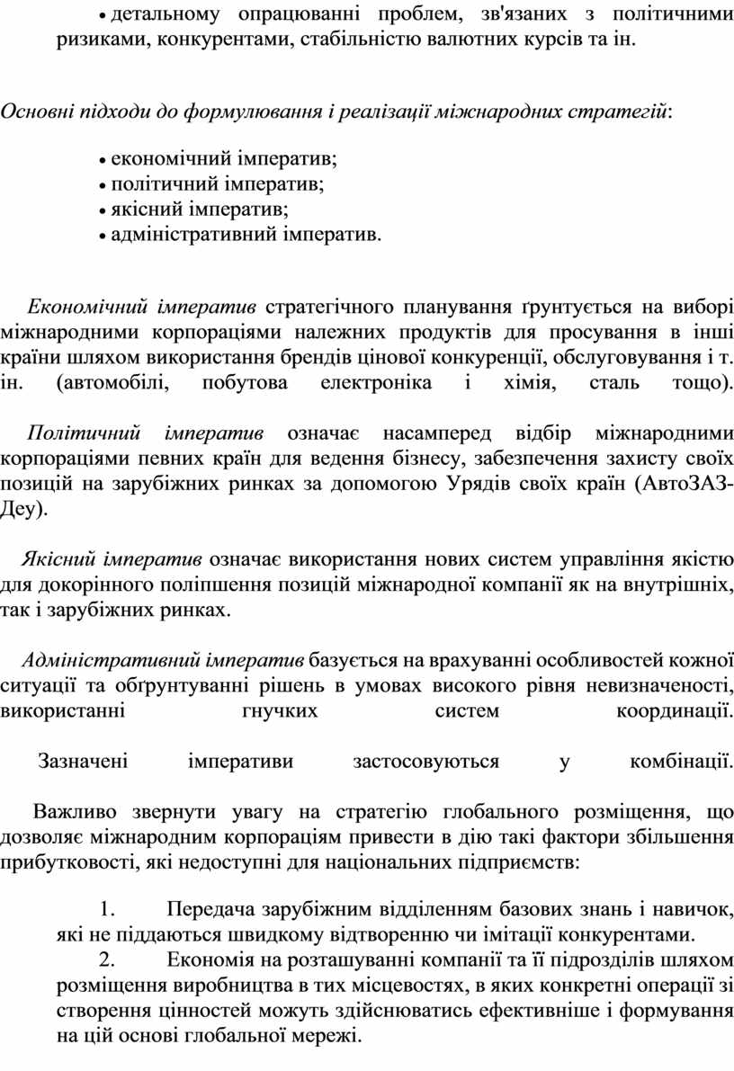 1. Визначення і утримання основного напрямку розвитку компанії в умовах диверсифікації міжнародних операцій.