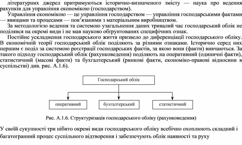 Рис. А.1.6. Структуризація господарського обліку (рахунковедення)