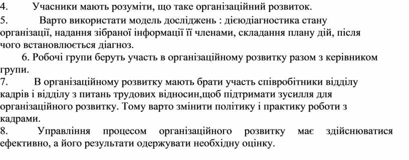 4. Учасники мають розуміти, що таке організаційний розвиток.