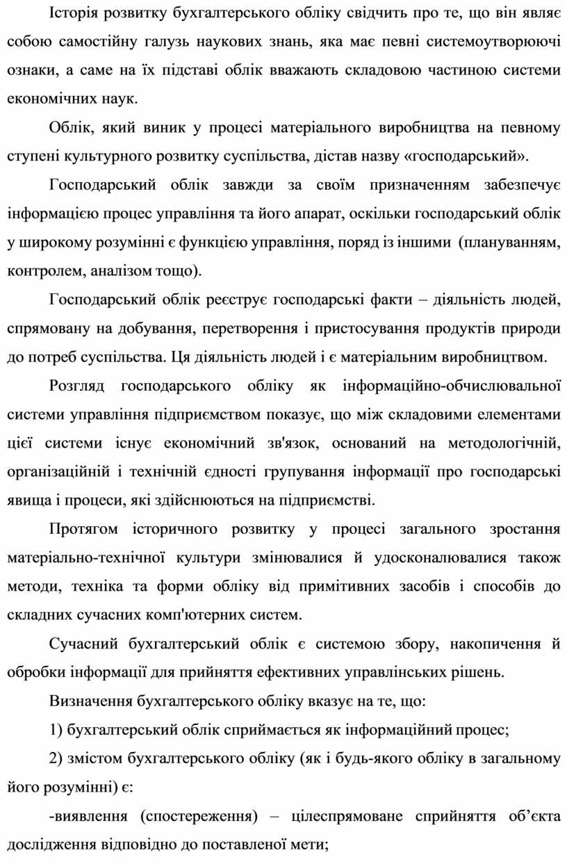 Загальне поняття обліку є досить широким і багатогранним. Загальновизнаним є тлумачення поняття обліку у широкому його розумінні, котре охоплює спостереження, вимірювання та реєстрацію певних природних і суспільних явищ, пов’язаних з господарською діяльністю. Отже, об’єктом особливої уваги обліковців була і залишається господарська діяльність, основу якої становить виробництво матеріальних благ.