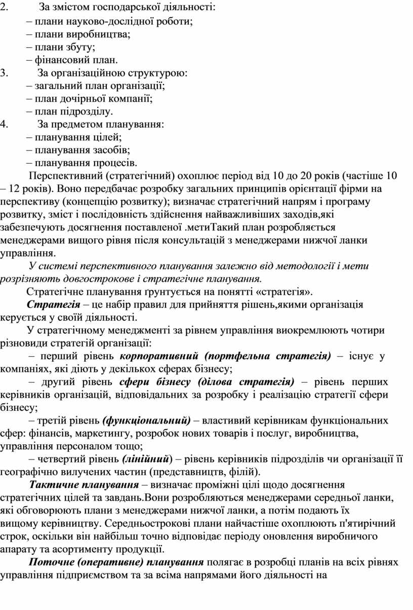 вищому керівництву. Середньострокові плани найчастіше охоплюють п'ятирічний строк, оскільки він найбільш точно відповідає періоду оновлення виробничого апарату та асортименту продукції.
