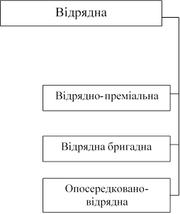 Відрядна форма оплати праці має наступні системи: пряма відрядна, преміальна, прогресивна, акордна, бригадна.