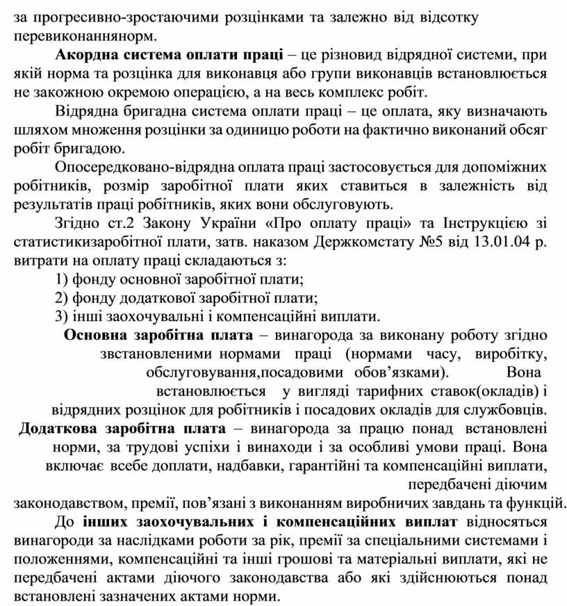Згідно ст.1 Закону України «Про оплату праці» заробітна плата – це винагорода, розрахована, як правило, в грошовому виразі, за трудовим договором власник або уповноважений ним орган виплачує працівнику за виконану роботу. Розмір заробітної плати залежить від складності та умов виконуваної роботи, професійно-ділових якостей працівника, результатів його праці та