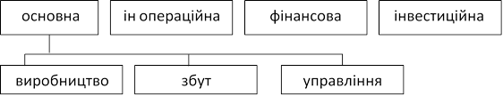 Основна діяльність – це здійснення операцій, повязаних з виробництвом або реалізацією продукції (товарів, послуг), що є визначальною метою створення підприємства та забезпечує основну частку його доходу.