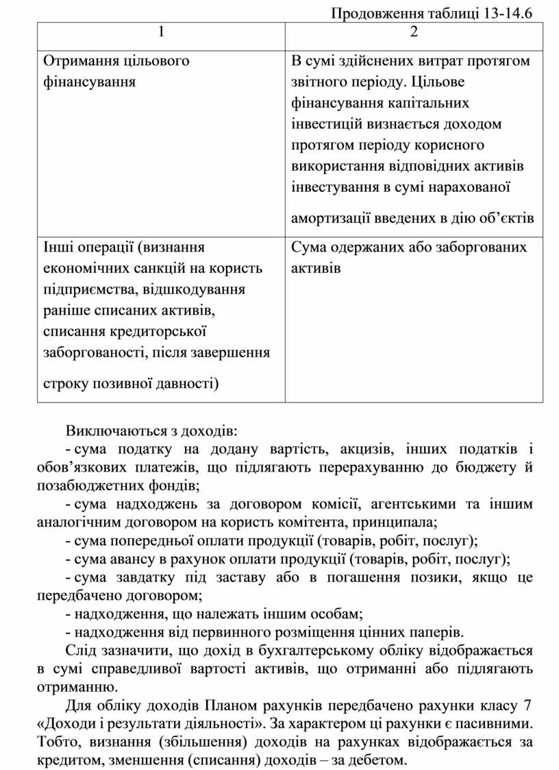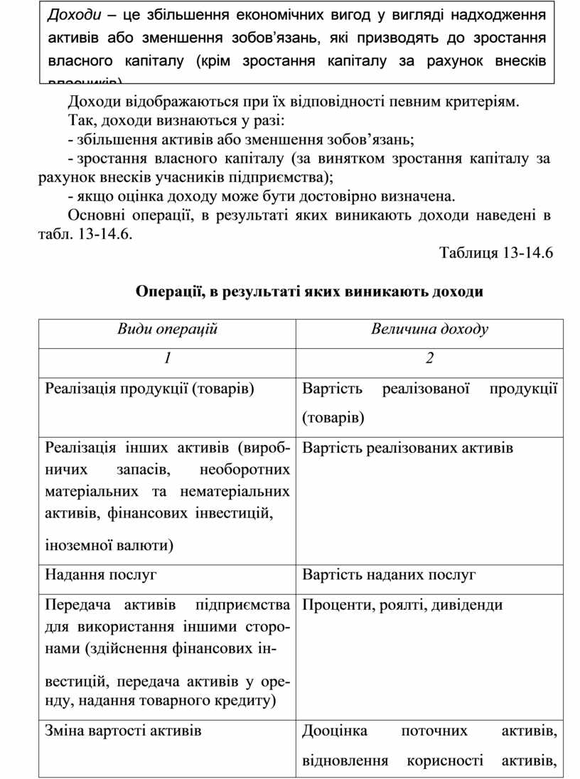 Основні операції, в результаті яких виникають доходи наведені в табл. 13-14.6.