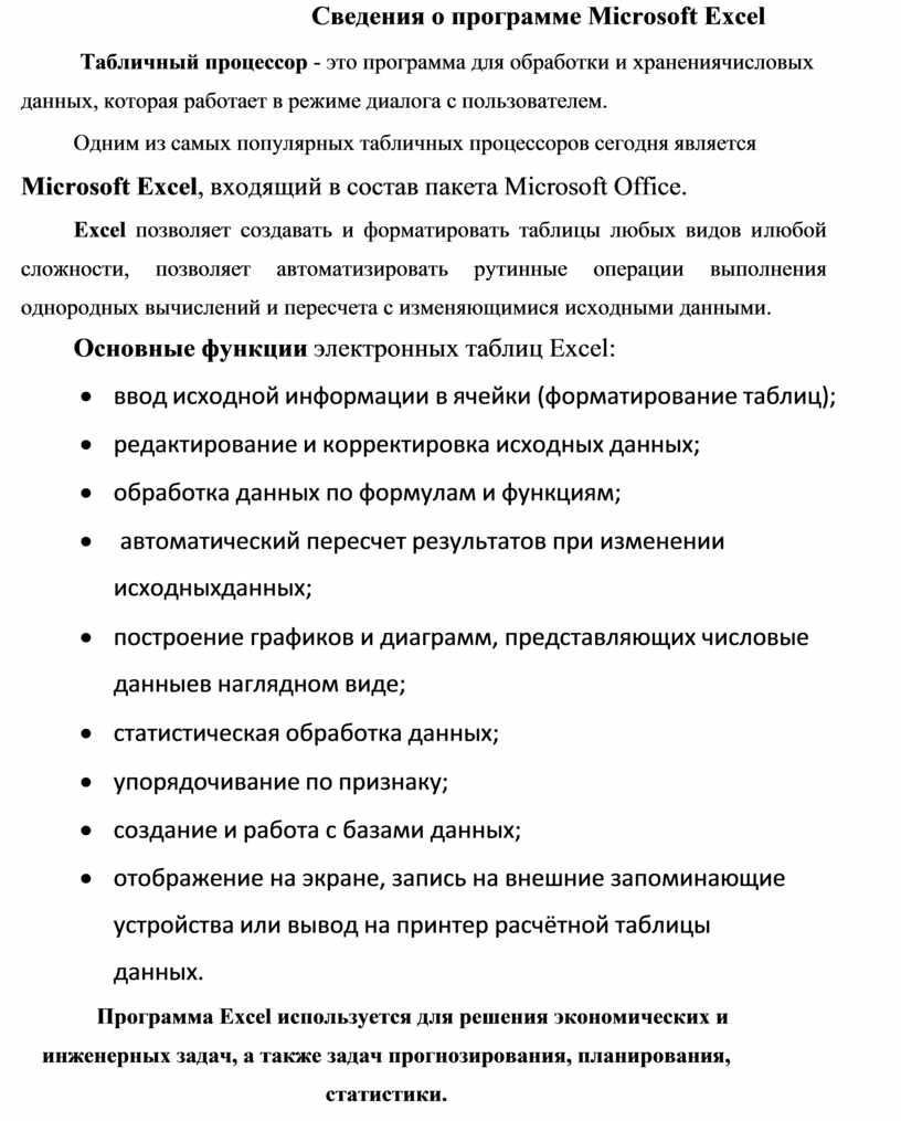 Excel позволяет создавать и форматировать таблицы любых видов и любой сложности, позволяет автоматизировать рутинные операции выполнения однородных вычислений и пересчета с изменяющимися исходными данными.