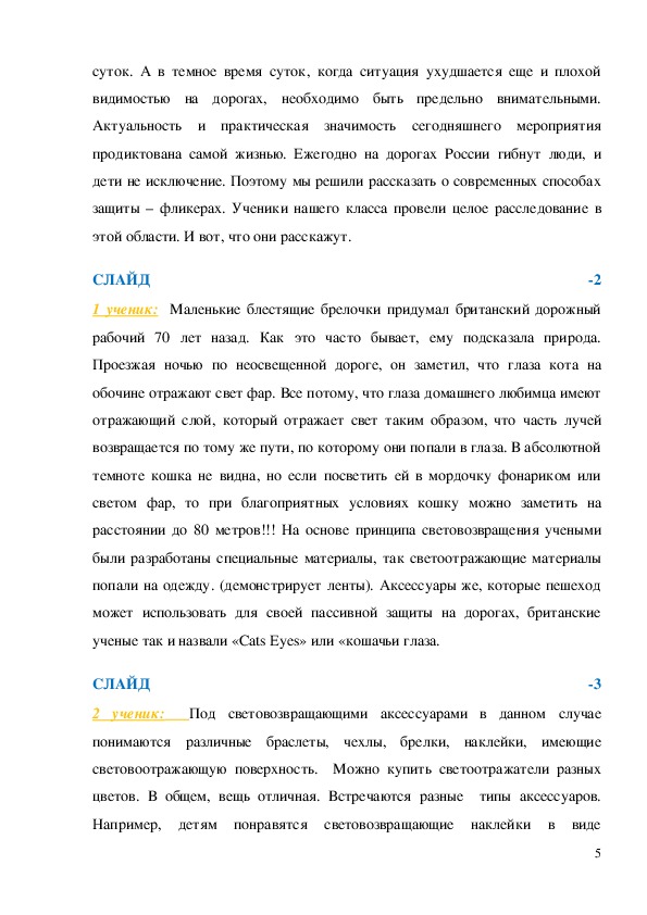 светоотражающих элментов, видеофильм «Стань заметней в темноте! »