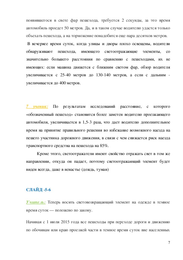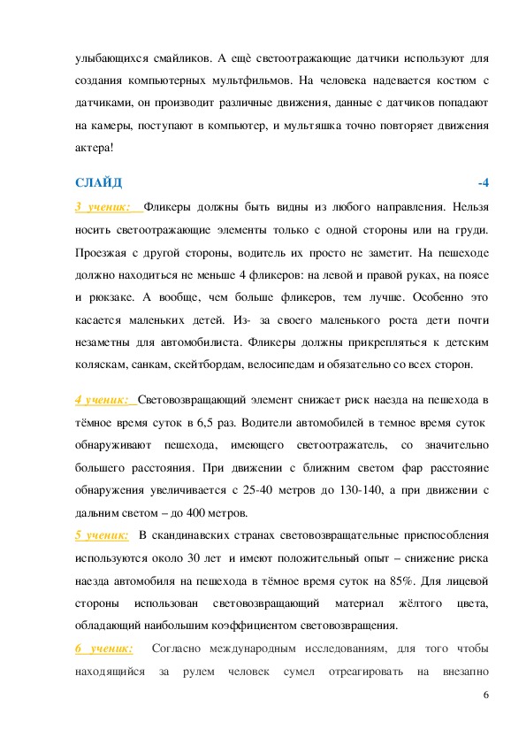 аварийность в темное время суток снизилась в 6 раз. Светлая, яркая одежда