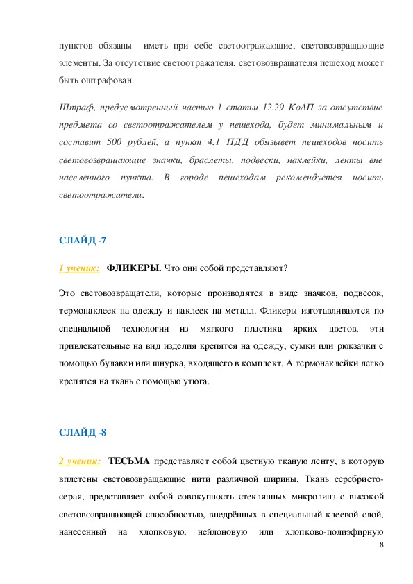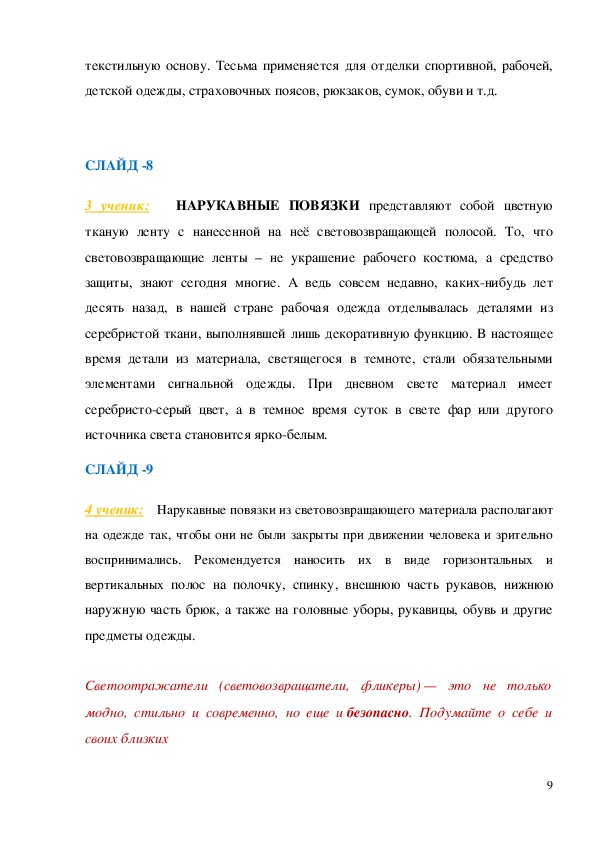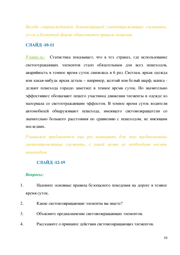 9Беседа сопровождается демонстрацией светоотражающих элементов,