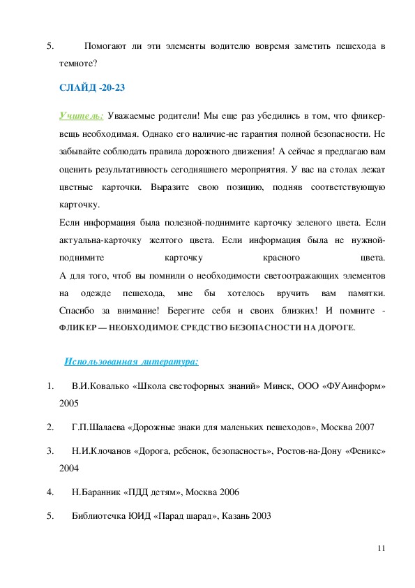 Учитель: Уважаемые родители! Мы еще раз убедились в том, что фликер