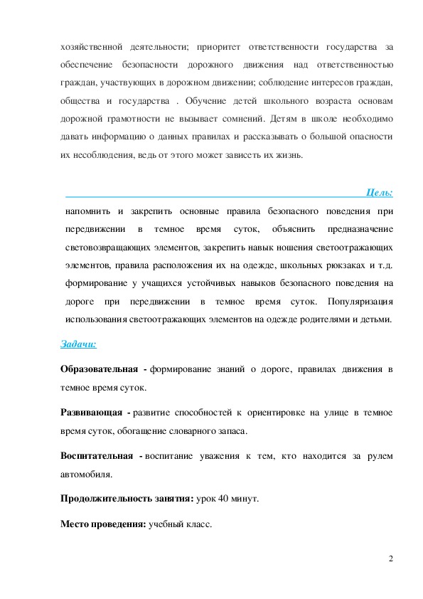 Данная разработка направлена на то, чтобы напомнить и закрепить основные правила безопасного поведения при передвижении в темное время суток, объяснить предназначение световозвращающих элементов, закрепить навык ношения светоотражающих элементов, правила расположения их на одежде, школьных рюкзаках и т.д. формирование у учащихся устойчивых навыков безопасного поведения на дороге при передвижении в темное время суток. Популяризация использования светоотражающих элементов на одежде родителями и детьми.
