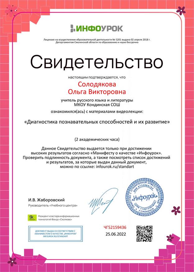 Свидетельство Диагностика познавательных способностей и их развитие.docx