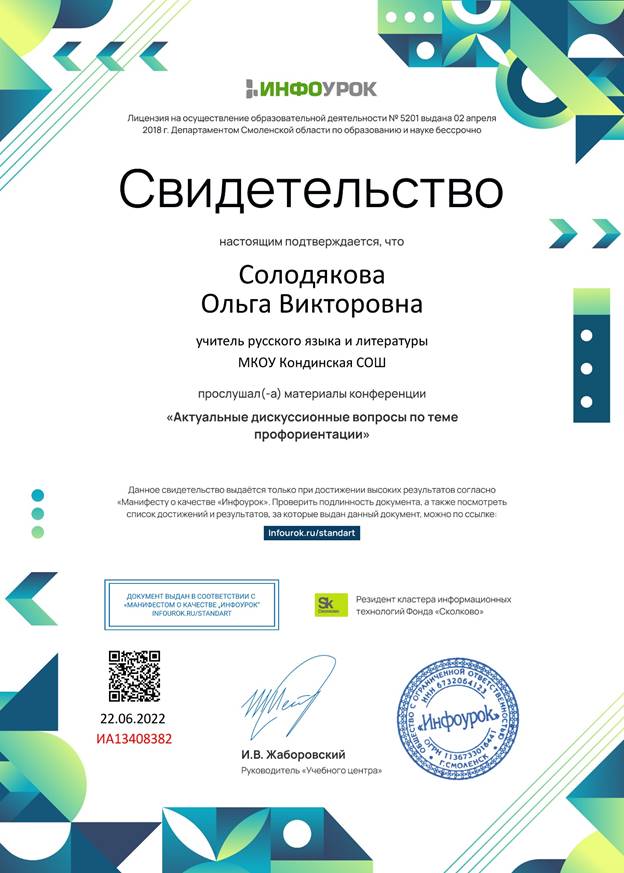 Свидетельство конференции Актуальные дискуссионные вопросы профориентации.docx