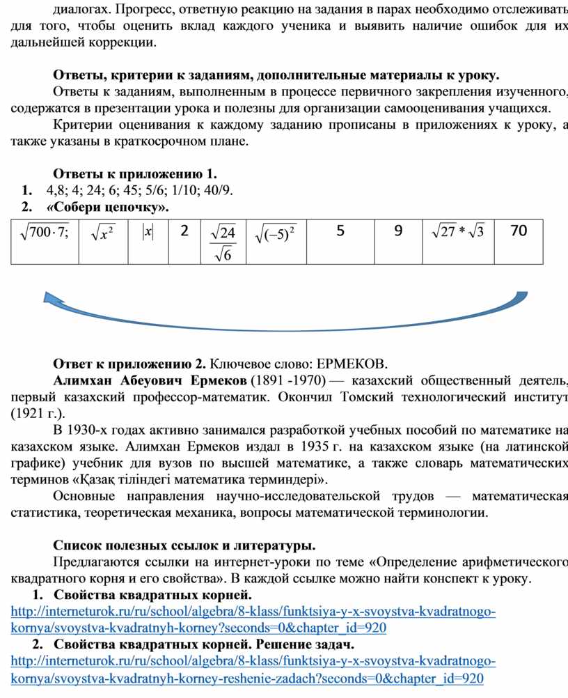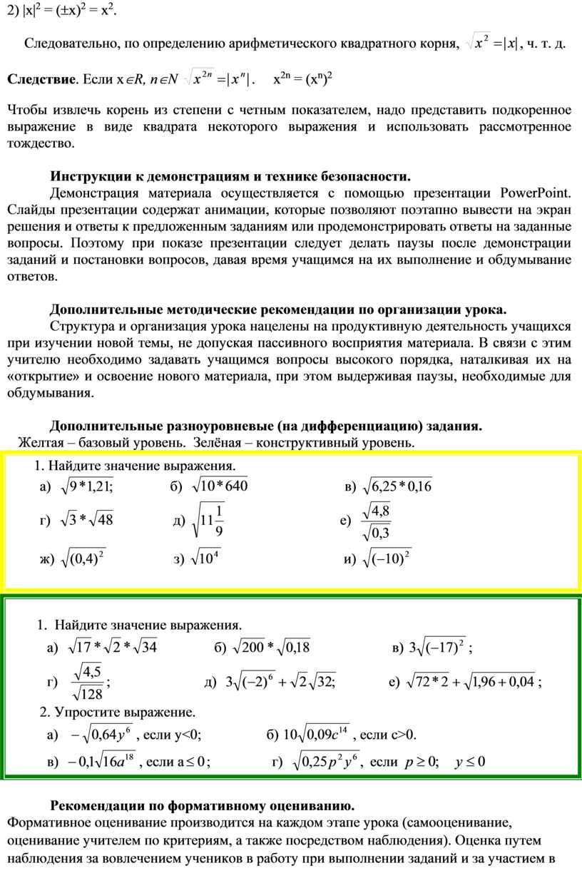 Предлагаются ссылки на интернет-уроки по теме «Определение арифметического квадратного корня и его свойства». В каждой ссылке можно найти конспект к уроку.