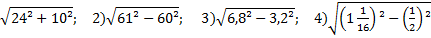 - извлекает корень из числового выражения, предварительно упростив его с помощью формул сокращенного умножения.