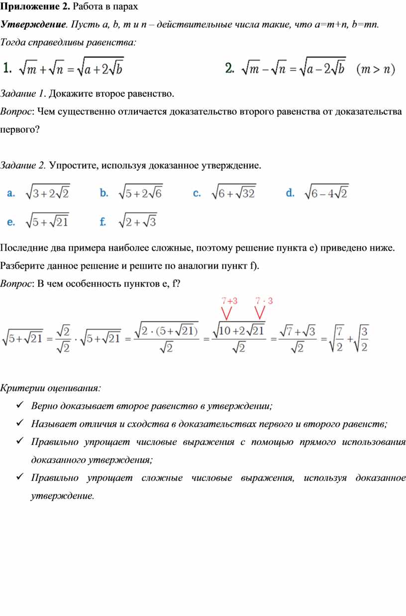 ü Правильно упрощает сложные числовые выражения, используя доказанное утверждение.