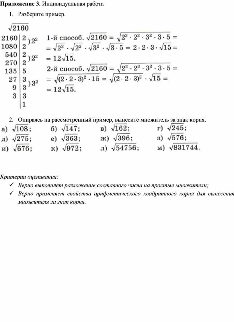 Приложение 3. Индивидуальная работа