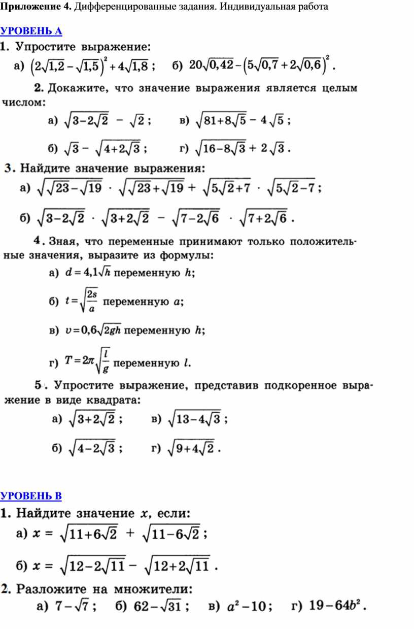 Приложение 4. Дифференцированные задания. Индивидуальная работа