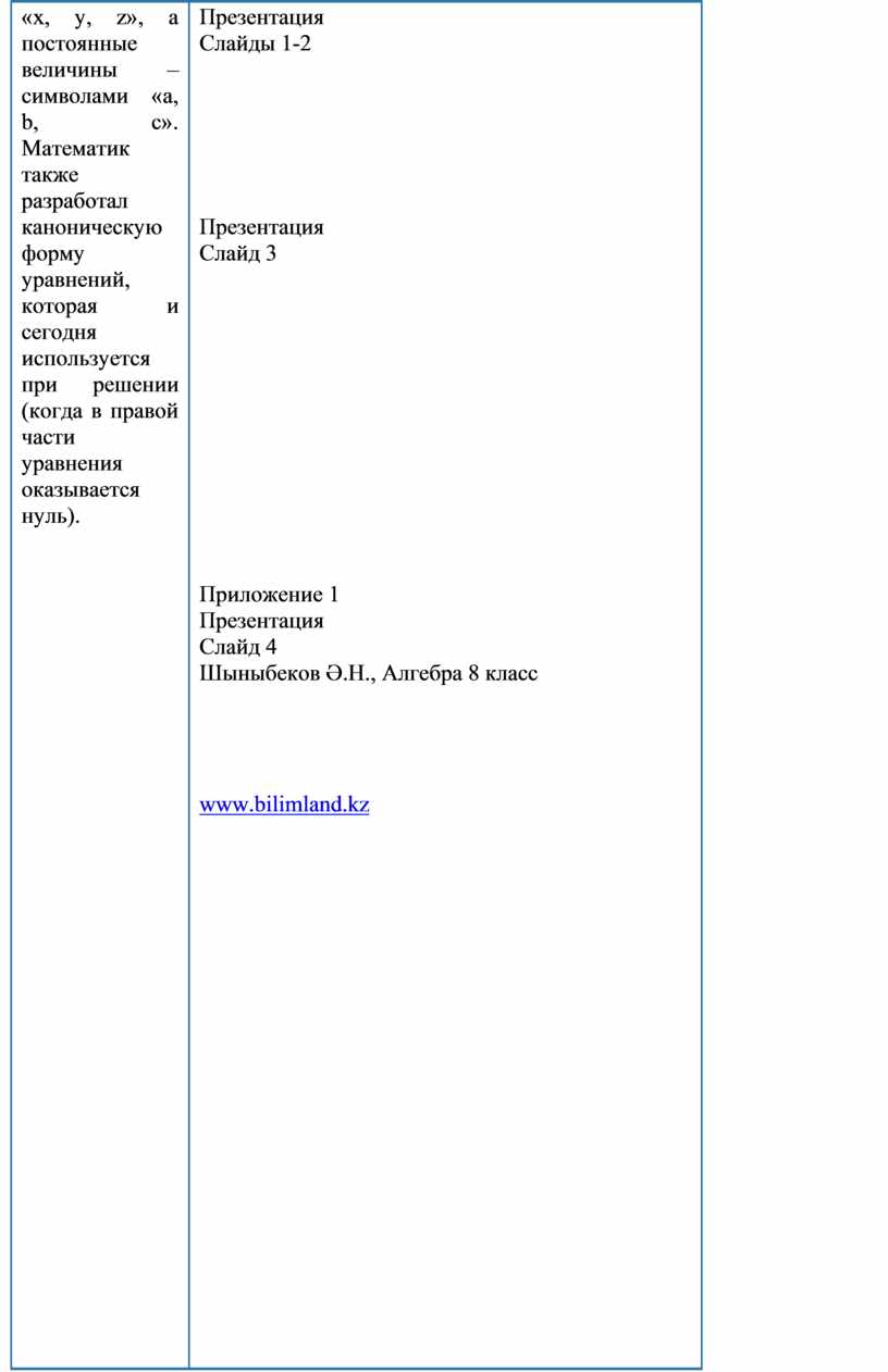 Приложение 1 Презентация Слайд 4 Шыныбеков Ә.Н., Алгебра 8 класс