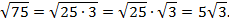 Для этого представим число 75 в виде произведения, в котором один из множителей является квадратом натурального числа, и применим теорему о корне из произведения. Получим: