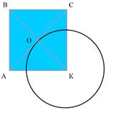 квадрата АВСК пересекаются в точке О. Доказать, что АС касается окружности с