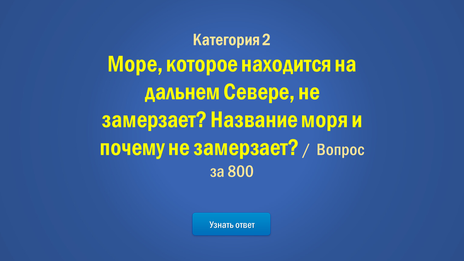 Баренцево море. В нём проходит тёплое течение Гольфстрим, поэтому оно не замерзает.Категория 2 / Вопрос за 800