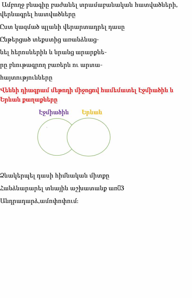 Վեննի դիագրամ մեթոդի միջոցով համեմատել Էջմիածին և Երևան քաղաքները