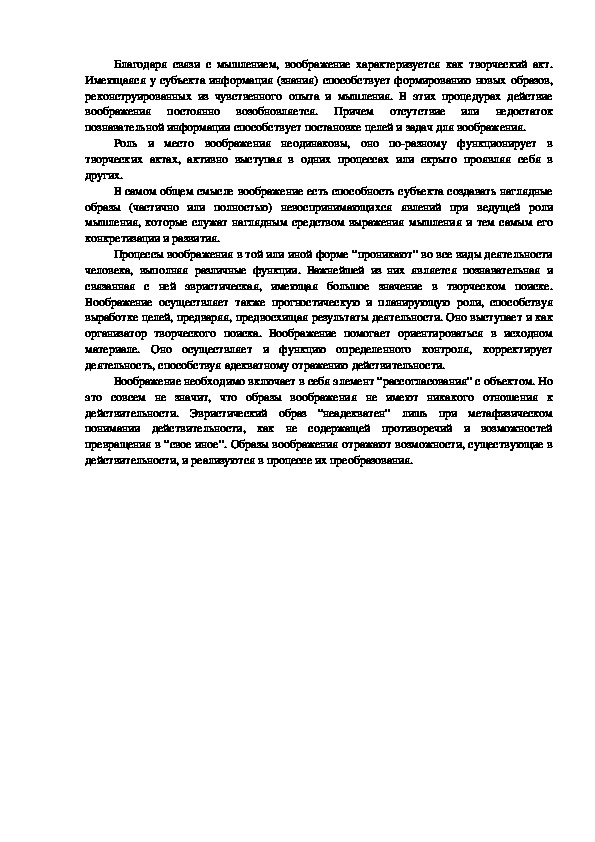 субъекта.Благодаря связи с мышлением, воображение характеризуется как творческий акт.