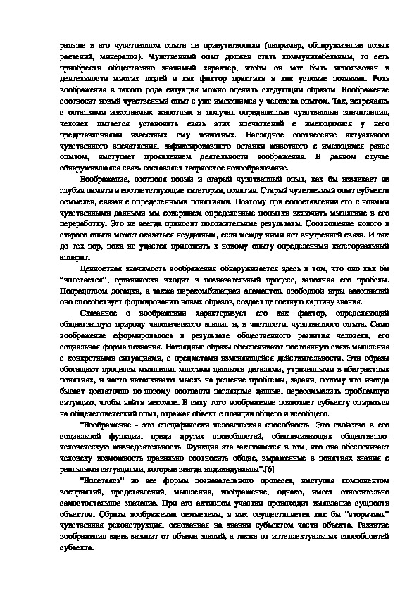 воображения в такого рода ситуация можно оценить следующим образом. Воображение