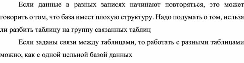 Если данные в разных записях начинают повторяться, это может говорить о том, что база имеет плохую структуру. Надо подумать о том, нельзя ли разбить таблицу на группу связанных таблиц