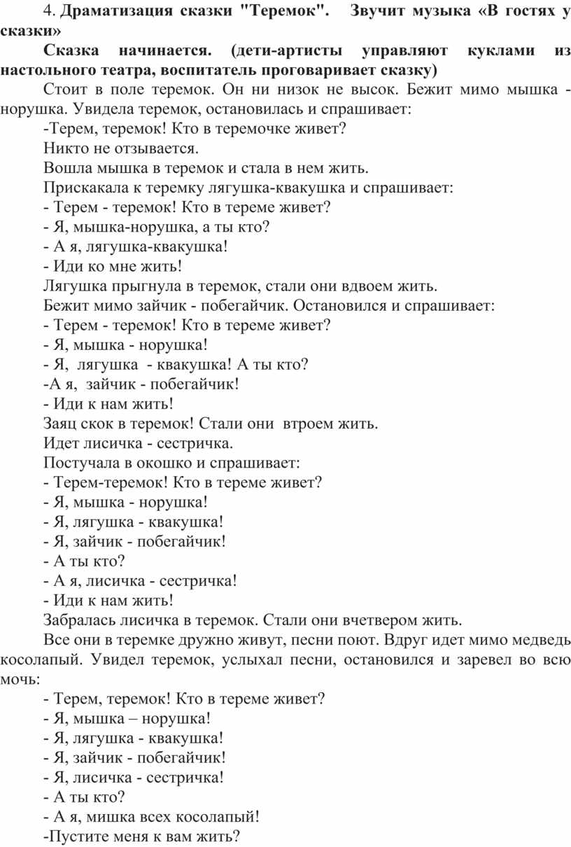 4. Драматизация сказки "Теремок". Звучит музыка «В гостях у сказки»