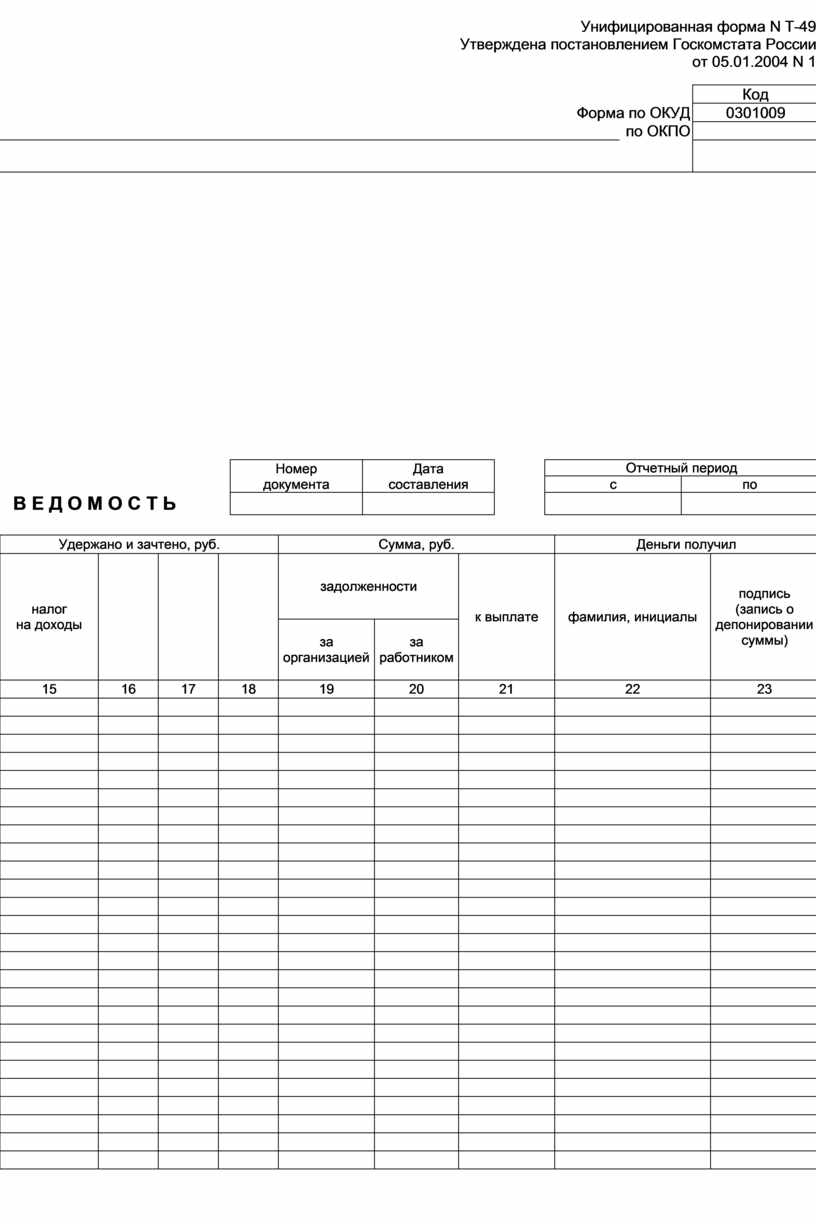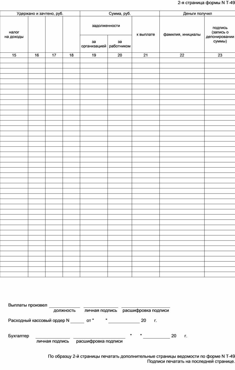 По образцу 2-й страницы печатать дополнительные страницы ведомости по форме N Т-49 |