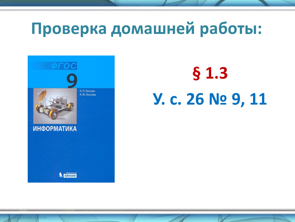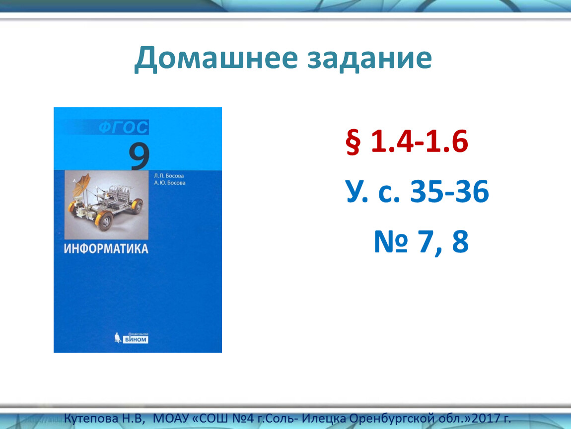 Л.Л. Босова, А.Ю. Босова « Информатика 9 класс». Бином. 2014.