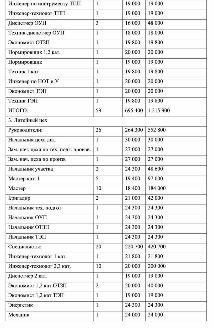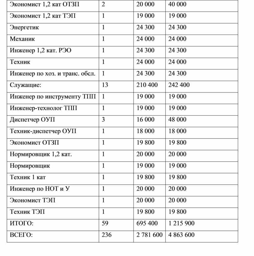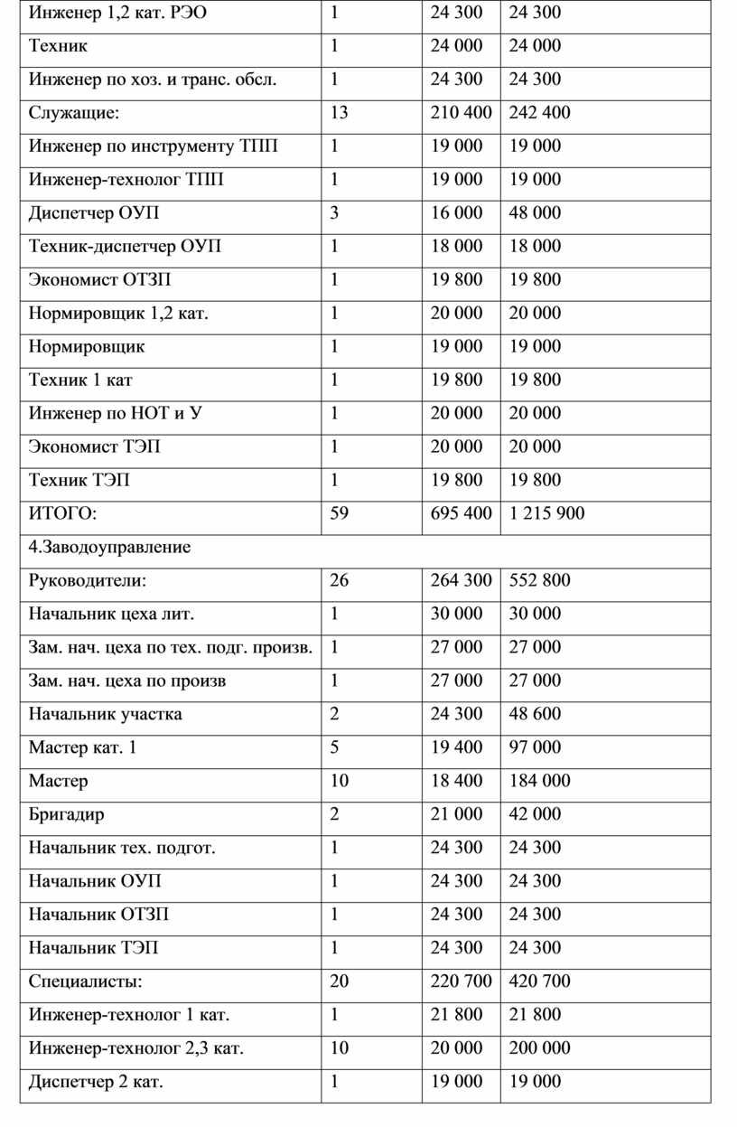 Таблица - Численность руководителей, специалистов и служащих завода Расчет планового годового фонда заработной платы основных рабочих