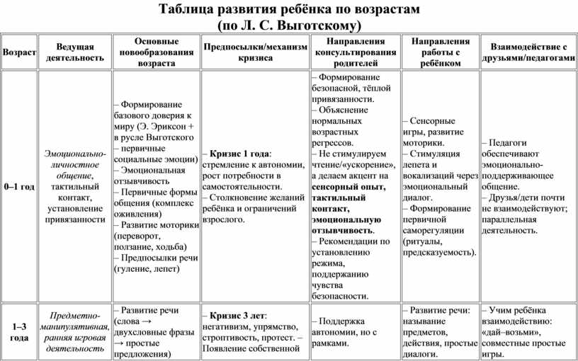 Таблица развития ребёнка по возрастам