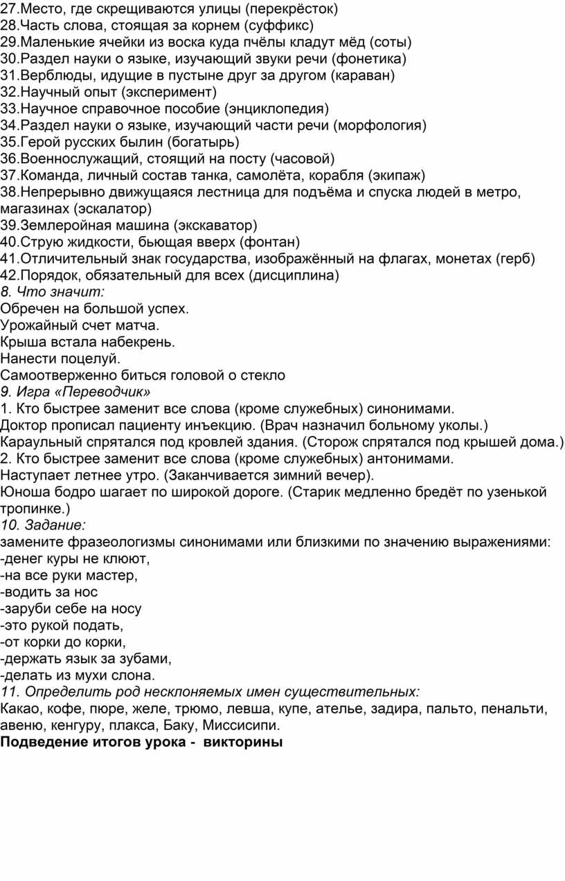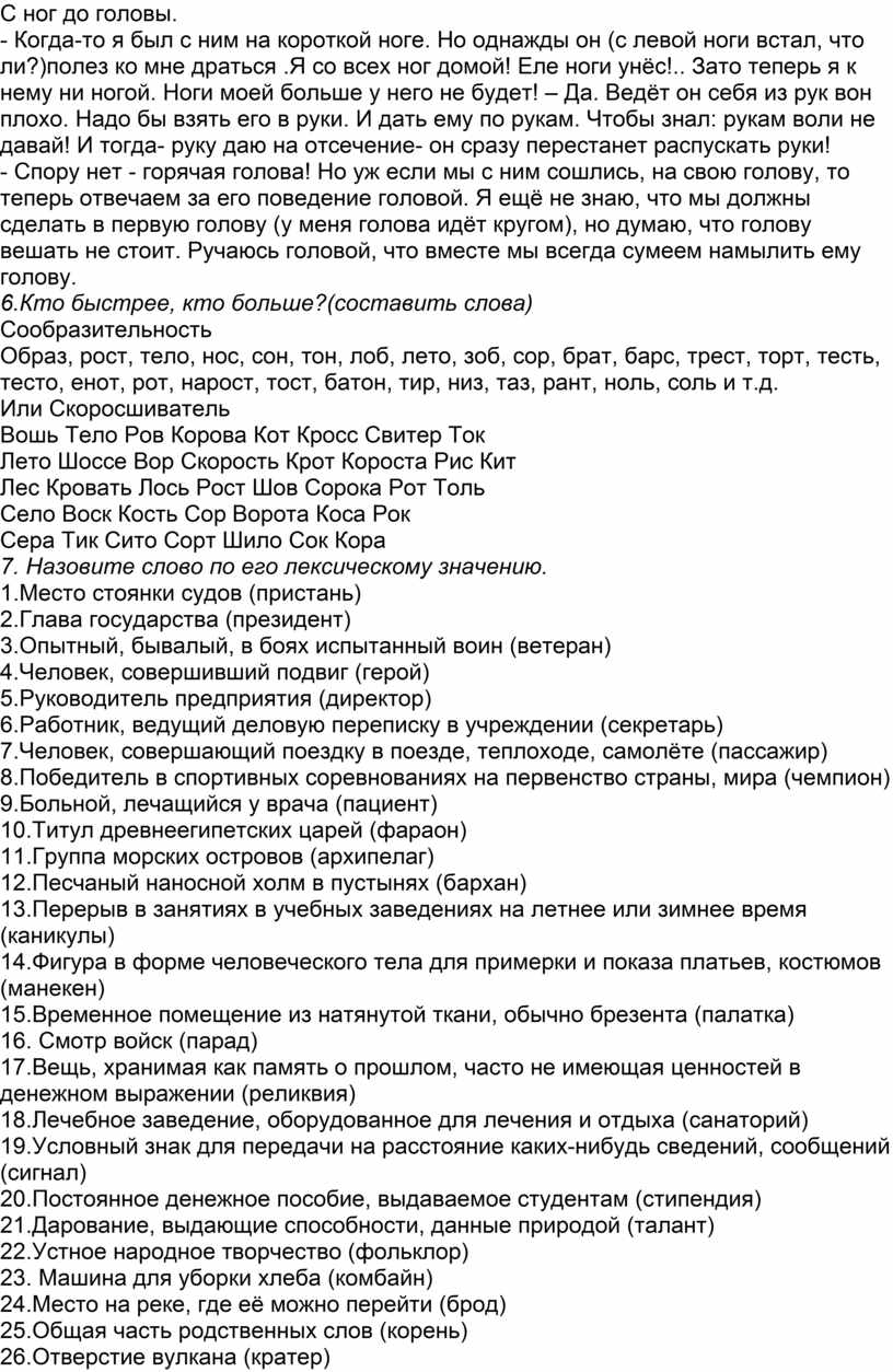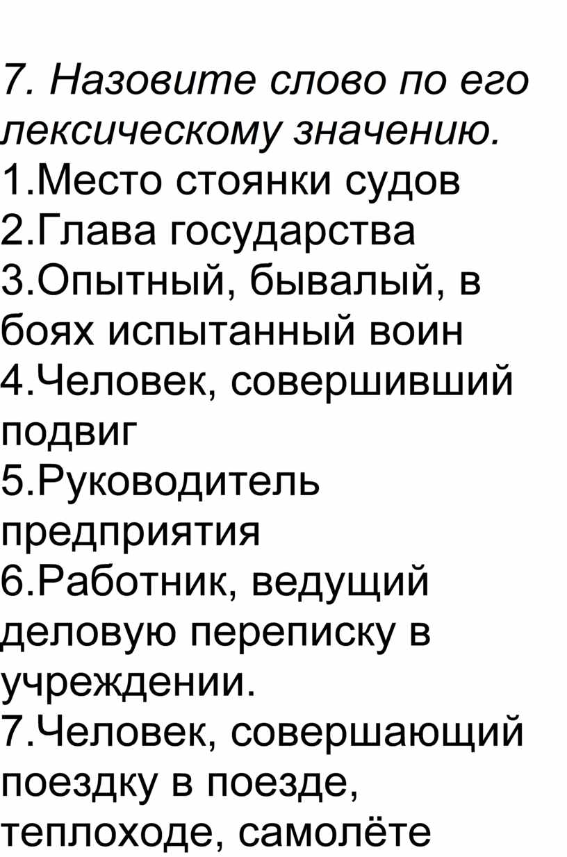 7. Назовите слово по его лексическому значению.