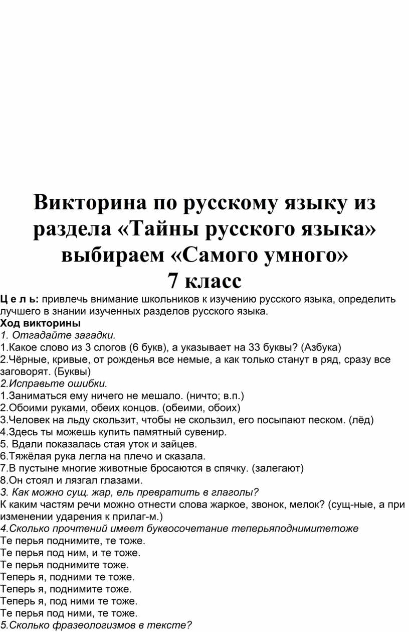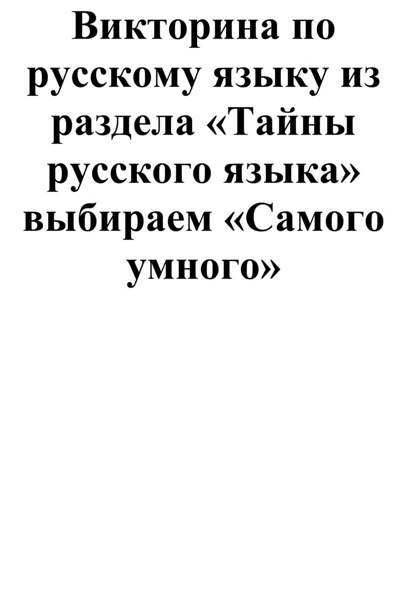 Викторина по русскому языку из раздела «Тайны русского языка» выбираем «Самого умного»